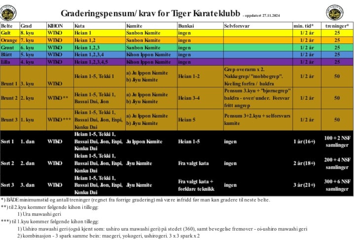 Graderingsinfo til hjemmeside – www.tigerkarate.no